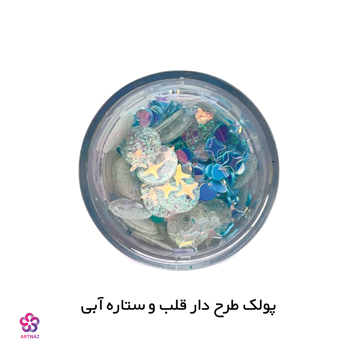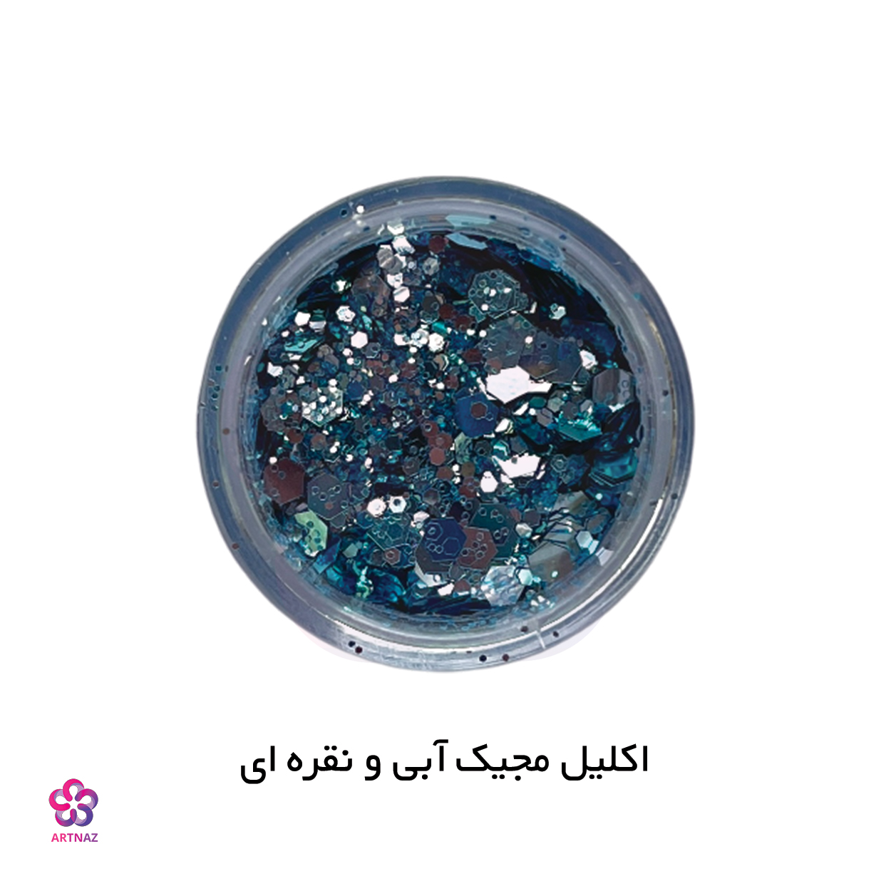 افکت رنگی آبی, افکت رنگی فیروزه ای, افکت گرانیت آبی و طوسی, اکلیل ساده درشت آبی تیره, اکلیل ساده درشت آبی روشن, اکلیل ساده ریز آبی تیره, اکلیل ساده ریز آبی روشن, اکلیل مجیک آبی و نقره ای, اکلیل مجیک بال مگسی آبی, اکلیل مجیک هلوگرافیک آبی, پولک طرح دار الماس آبی, پولک طرح دار برف آبی, پولک طرح دار قلب و ستاره آبی, پولک طرح گل آبی, سنگ قیمتی لاجورد, فیمو برف آبی مخلوط