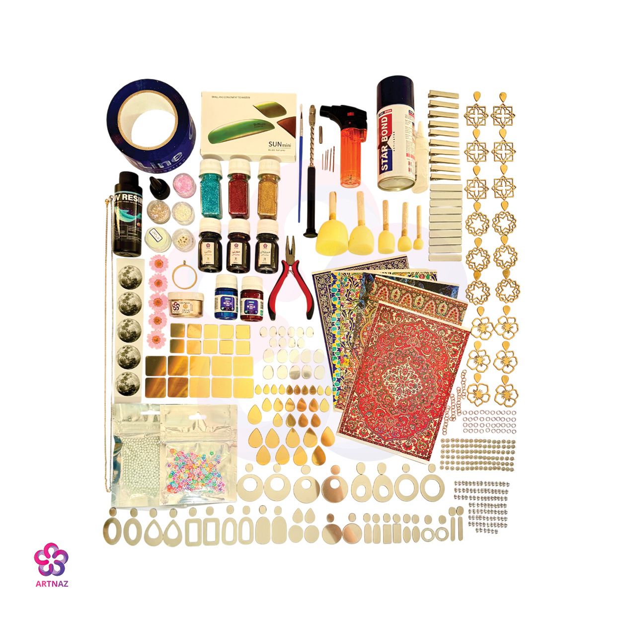 | وسایل پک | اکلیل ساده کد14=1عدد, اکلیل ساده کد4=1عدد, اکلیل ساده کد8=1عدد, اکلیل مجیک کالکشن 1 (کد 21)=1عدد, اکلیل مجیک کالکشن 2 (کد 40)=1عدد, اکلیل مجیک کالکشن 2 (کد 56)=1عدد, بیس مولتی استایل زیورآلات کد2 بزرگ طلایی=1بسته, بیس مولتی استایل زیورآلات کد2 کوچک طلایی=1بسته, بیس مولتی استایل زیورآلات کد2 متوسط طلایی=1بسته, بیس مولتی استایل زیورآلات کد4 کوچک نقره ای=1بسته, بیس مولتی استایل زیورآلات کد4 متوسط نقره ای=1بسته, بیس مولتی استایل زیورآلات کد6 بزرگ طلایی=1بسته, بیس مولتی استایل زیورآلات کد6 متوسط طلایی=1بسته, بیس مولتی استایل گوشواره ایران من کد139 طلایی=1بسته, بیس مولتی استایل گوشواره ایران من کد21 طلایی=1بسته, بیس مولتی استایل گوشواره کالکشن کلاسیک میکس مینی نقره ای=1بسته, بیس مولتی استایل گوشواره کالکشن گل کد127 طلایی=1بسته, بیس مولتی استایل گیره سر کد8 نقره ای=1بسته, تامپون(5عددی)=1بسته, چسب مایع 123 (100 میل)=1عدد, چسب نواری کاملاین=1عدد, حلقه اتصال دایره ای (طلایی استیل 6 میلی متری)=4بسته, حلقه اتصال دایره ای (نقره ای استیل 6 میلی متری)=4بسته, خرج کار گوشواره میخی (نقره ای استیل)=16 بسته, دریل دستی به همراه 5 مته=1عدد, دستگاه یووی وارداتی کد1=1عدد, دم باریک=1عدد, رزین یووی 100 گرمی=1عدد, رنگ اکریلیک آبی متالیک سوداکو=1عدد, رنگ اکریلیک قرمز سیر متالیک سوداکو=1عدد, رنگ پودر فلز طلایی (کد33) 15 گرمی=1عدد, رنگ پودری شب تاب فیروزه ای=1عدد, رنگ جوهر الکلی صورتی=1عدد, رنگ جوهر الکلی طلایی=1عدد, رنگ جوهر الکلی فیروزه ای=1عدد, زنجیر آماده دیپلمات طلایی=1عدد, زنجیر آماده دیپلمات نقره ای=1عدد, طلق سفید پشت برچسبی طرح دار 6 عددی ایرانی=1 عدد, طلق شفاف پشت برچسبی ماه طوسی=5عدد, فندک اتمی=1عدد, فیمو گل کد2=1عدد, قاب برنجی کد11 طلایی=1عدد, قلمو=1عدد, گل خشک اسپیره=1بسته(20 عددی), گل خشک بابونه صورتی=1بسته(5 عددی), گیره فلزی انبری 4/5 سانتی متری نقره ای=10عدد, مروارید 4 میل سفید=1بسته |