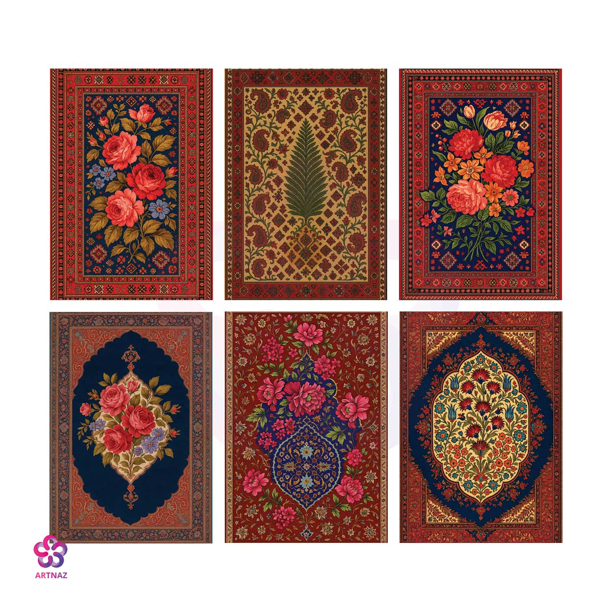 طلق سفید پشت برچسبی طرح دار 6 عددی فرش گل